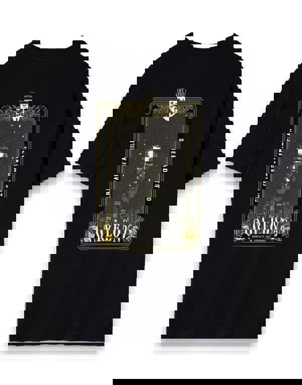 The clothing comes in black, featuring a graphic print of Vito Corleone in New York City 1925, where he founded his family business, finished with Italian text 'GLI AFFARI DI FAMIGLIA SUPERANO TUTTO'