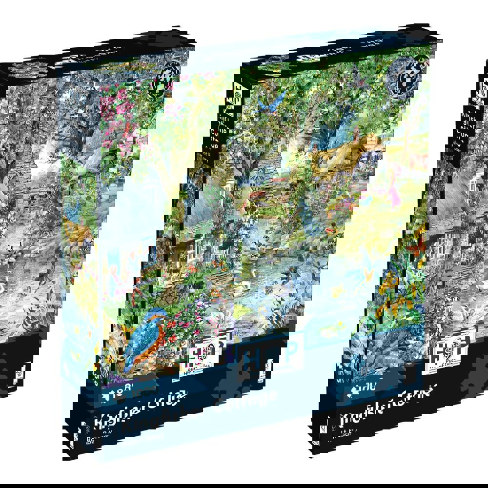 The Kingfisher Cottage 1000 piece jigsaw puzzle captures a charming thatched building scene by artist Robert Barry. This delightful 1000 piece puzzle offers a wonderful way to unwind, transforming hours into satisfying moments of focus. It is made in the UK by The House of Puzzles, using FSC certified board for sustainability.
