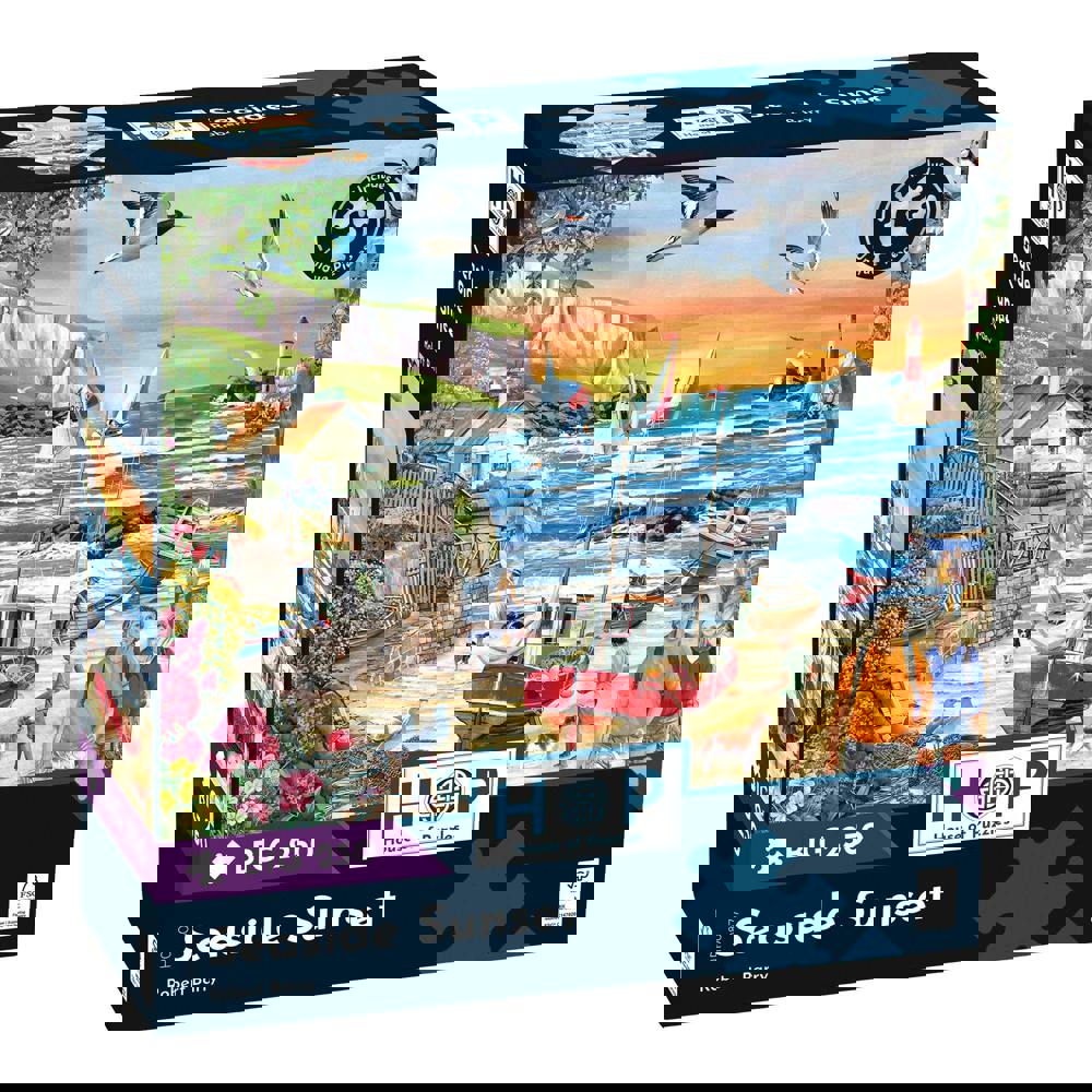 This House of Puzzles Seaside Sunset BIG 250 jigsaw puzzle features vibrant artwork by Robert Barry. It offers a relaxing puzzle experience with 250 larger pieces, ideal for those who prefer bigger puzzle parts. The completed puzzle measures 34 x 48cm.