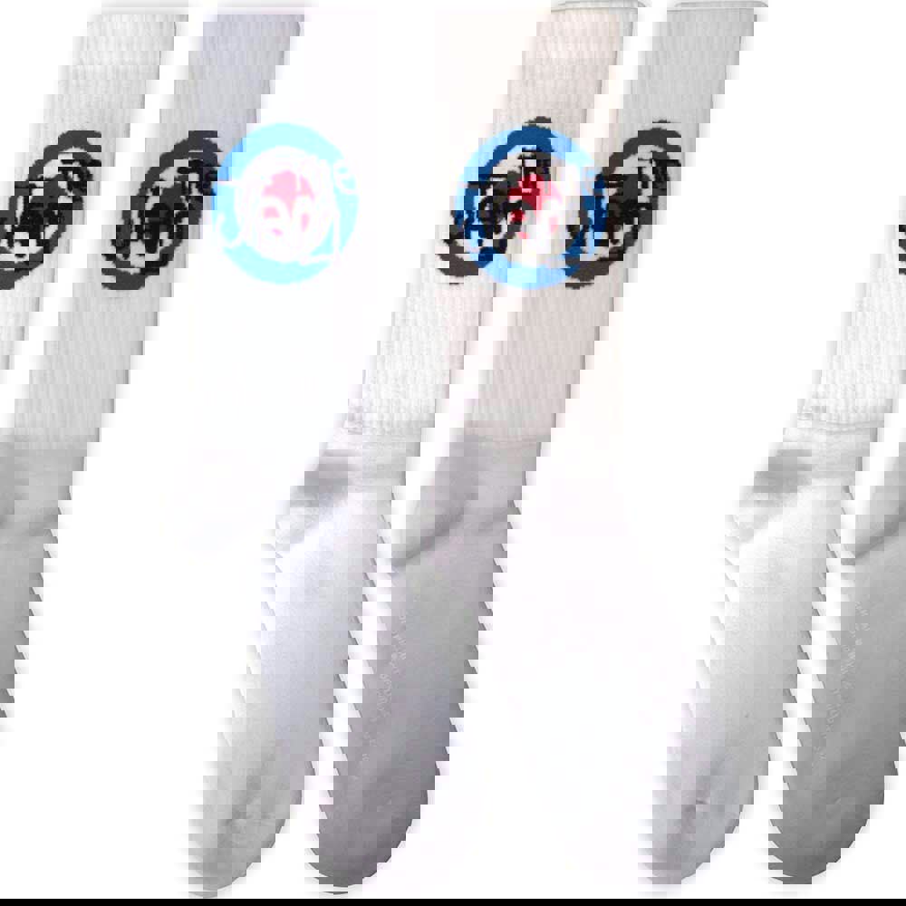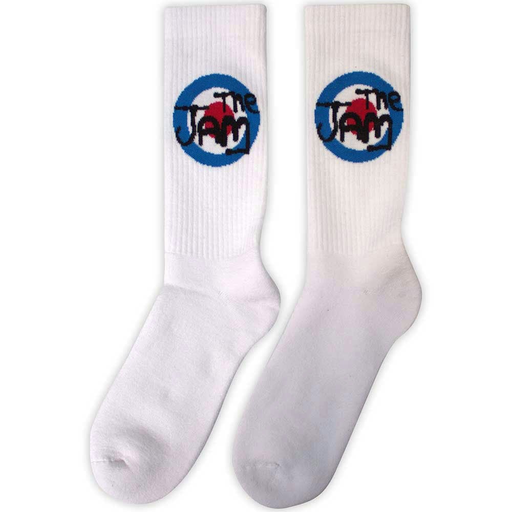 Official licensed The Jam Unisex Terry Socks featuring the 'Target Logo' design motif. High quality Terry Socks available in a white colourway. These premium quality, colourful, all-over pattern cotton rich woven socks are guaranteed to stand out in the crowd. They are a thicker quality cotton similar to sports quality terrycloth.