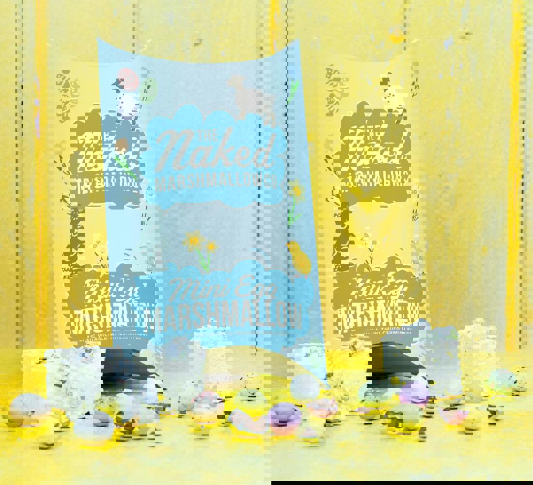 We've whipped up a delicious vanilla marshmallow and topped it with smashed mini egg pieces. Our Mini Egg marshmallows are presented in a stunning Easter design pillow pack.
