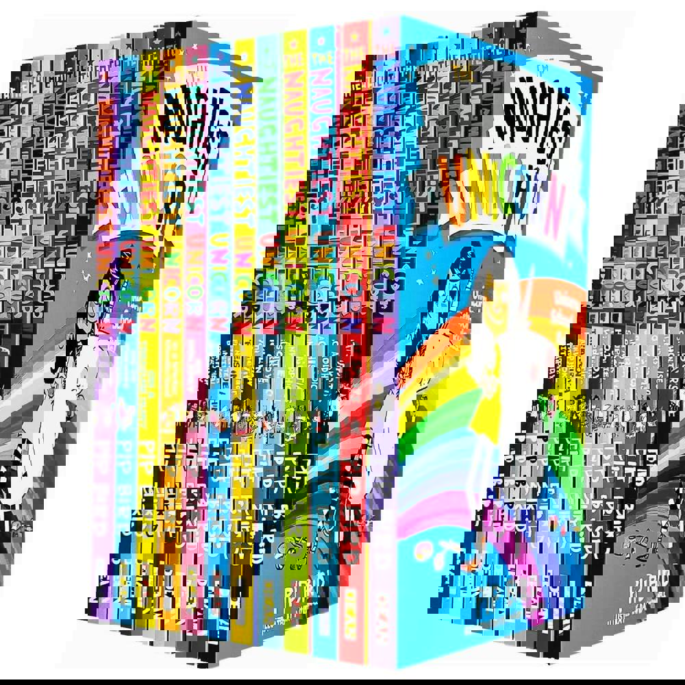 The Naughtiest Unicorn Series is a 12-book collection by Pip Bird, bringing together the full set of short, illustrated chapter books. The series follows Mirabelle, a very naughty unicorn who turns everyday school life into magical mayhem, with stories shaped around familiar events and celebrations.