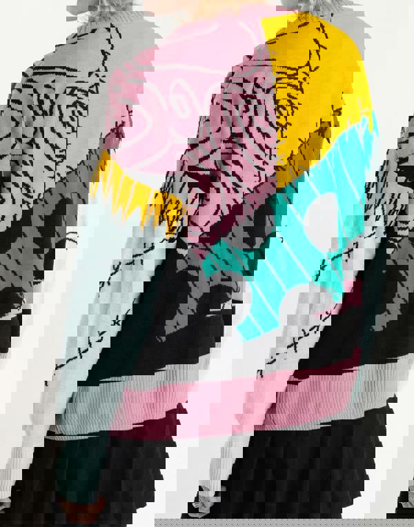 This long sleeve cardigan features a unique multicoloured button front design that showcases key elements inspired by the movie.