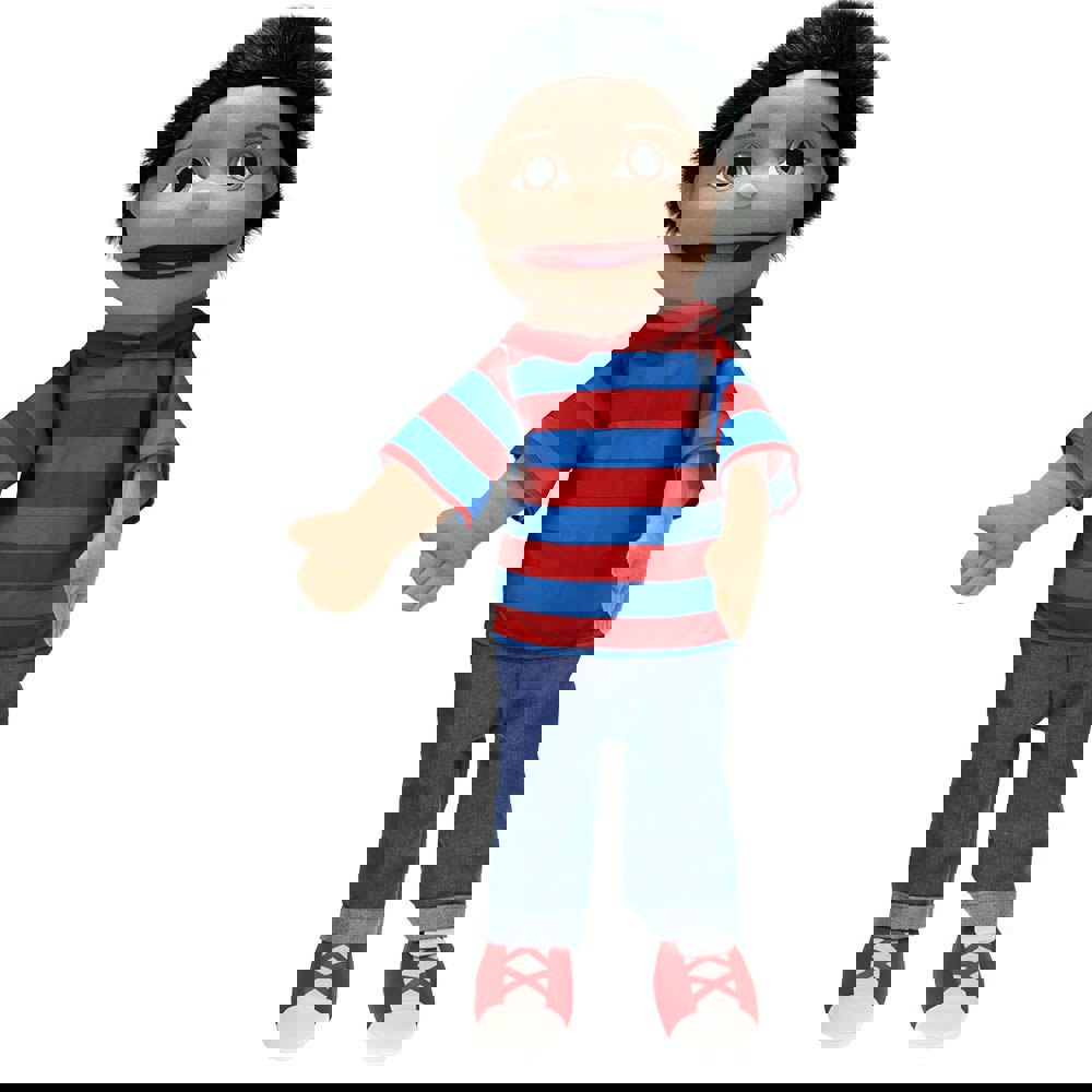 • Medium Boy puppet, dressed in an eye-catching Red/Blue top with jeans and matching detailed trainers. Designed for endless creativity and interaction, this puppet invites both children and adults to embark on storytelling and expression.