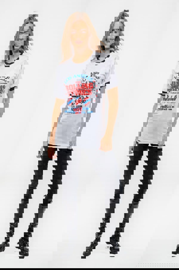 An official licensed The Rolling Stones Unisex T-Shirt featuring the 'American LA Tour' design motif. This high quality T-Shirt is available in a white colourway. High quality classic soft-style cotton ringer style tee featuring front printing, short sleeves and crew neck. Contrasting collar and sleeve colour. Comes in a wide range of sizes from Small through XX-Large, subject to availability.