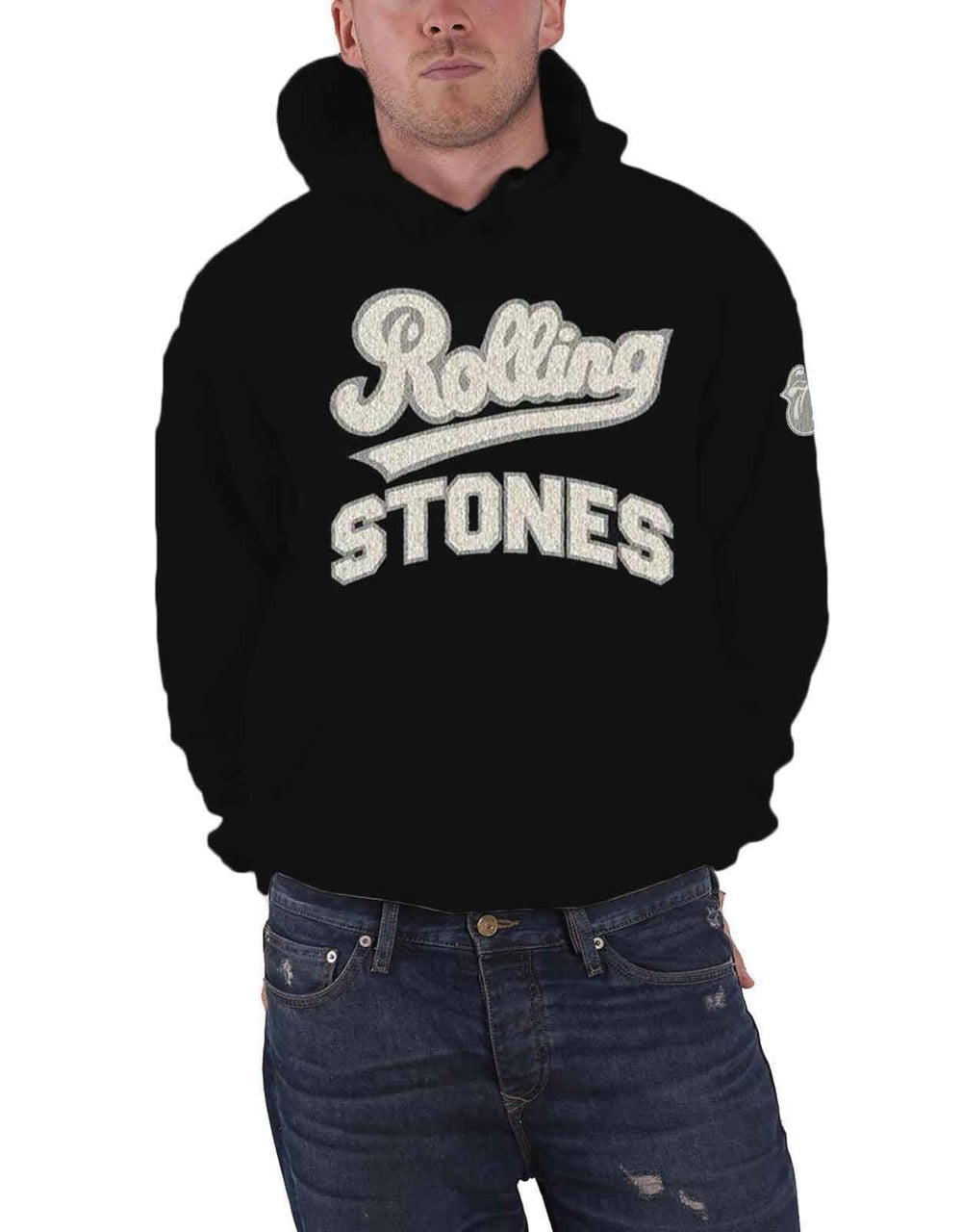 The Rolling Stones Hoodie Band Logo Applique Tongue Official Mens Black Pullover