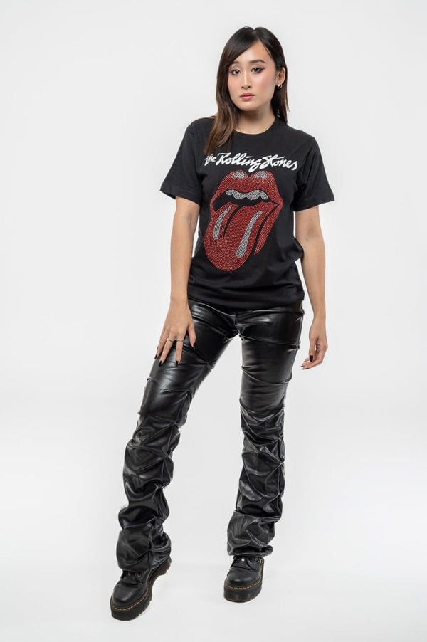 An official licensed The Rolling Stones Unisex T-Shirt featuring the 'Logo & Tongue' design motif. This high quality T-Shirt is available in a black colourway. Eye catching, high quality soft-style cotton/poly tee. With short sleeves, crew neck and front screen printing. Features red and white diamante embellishments. A stunning range of premium quality fashion tees richly embellished in eye-catching diamante/rhinestone crystals. 60% Cotton, 40% Polyester. Machine cold wash (30 degrees), wash inside out, don't bleach, dry low, don't iron decoration.