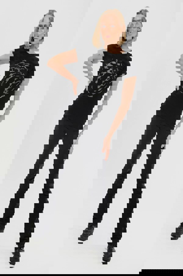An official licensed The Rolling Stones Ladies T-Shirt featuring the 'Classic Tongue Logo' design motif. This high quality T-Shirt is available in a black colourway. High quality soft-style cotton fashion tee with short sleeves, richly embellished with gorgeous diamante/rhinestone crystals. Comes in a wide range of sizes from Small through XX-Large, subject to availability.