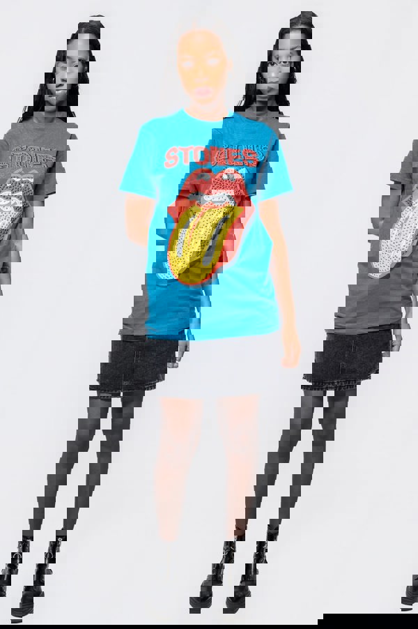 An official licensed The Rolling Stones Unisex T-Shirt featuring the 'Dia Tongue' design motif. This high quality T-Shirt is available in a teal blue colourway. Eye catching, high quality soft-style cotton/poly tee. With short sleeves, crew neck and front screen printing. Features diamante embellishments. Machine cold wash (30 degrees), wash inside out, don't bleach, dry low, don't iron decoration. Comes in a wide range of sizes from Small through XX-Large, subject to availability.