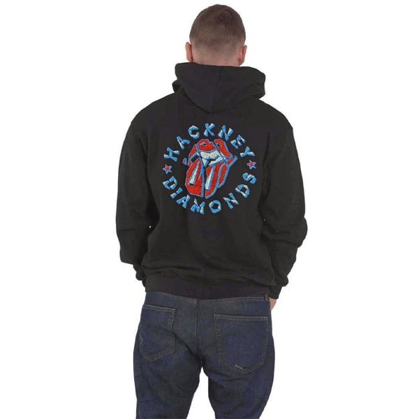 An official licensed The Rolling Stones Unisex Zipped Hoodie featuring the 'Hackney Diamonds Stars' design motif. This high quality Zipped Hoodie is available in a black colourway. High quality cotton unisex zipped hoodie featuring drawstring hood, zipped opening, pouch pockets. With front and back printing. Comes in a wide range of sizes from Small through XX-Large, subject to availability.