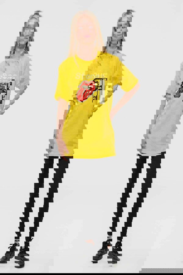 New and official band merchandise The Rolling Stones kids t-shirt showcasing the 'No Filter Text' graphic design on soft-style cotton. This high-quality garment is available in a yellow colourway. Size options include 3 through 14 years.