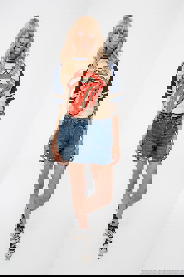 An official licensed The Rolling Stones Unisex Raglan T-Shirt featuring the 'Lick' design motif. This high quality Raglan T-Shirt is available in a natural & navy blue colourway. High quality soft-style cotton unisex fit tee with crew neck and short sleeves. Features front printing and contrasting sleeves to give a retro vibe. Comes in a wide range of sizes from Small through XX-Large, subject to availability.
