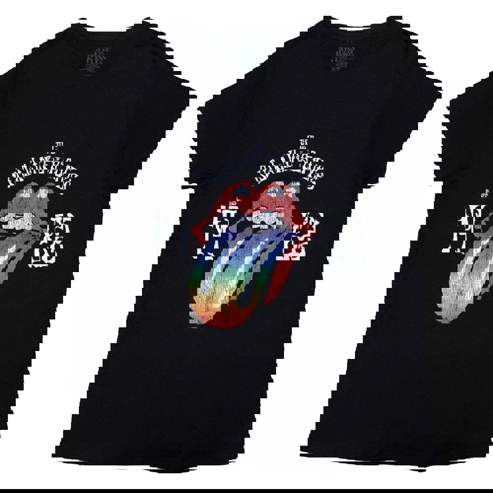 An official licensed The Rolling Stones Ladies T-Shirt featuring the 'Sixty Rainbow Tongue '62' design motif. This high quality T-Shirt is available in a black colourway. Extraordinary on-trend finishing makes this t-shirt a must have buy for every fan. High quality soft-style cotton tee with short sleeves and crew neck. Features front printing with puff application to text. The Stones just keep on rolling! We are thrilled to announce the Rolling Stones 2022 Tour! Titled SIXTY to celebrate 60 special years together. Machine wash cold. Do not bleach. Dry Low. Do not iron decoration. Comes in a wide range of sizes from Small through XXXX-Large, subject to availability.