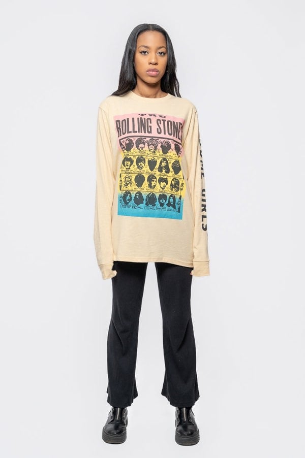 An official licensed The Rolling Stones Unisex Long Sleeve T-Shirt featuring the 'Some Girls' design motif. This high quality Long Sleeve T-Shirt is available in a sand colourway. High quality soft-style cotton unisex long sleeved tee shirt, ideal for those cooler months. Features front, back & sleeve printing for extra impact. Comes in a wide range of sizes from Small through XX-Large, subject to availability.
