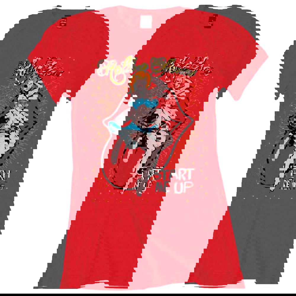 An official licensed The Rolling Stones Ladies Tee featuring the 'Start me up' design motif. This high quality t-shirt design is available in the red colourway. We offer a range of sizes from Small through XX-Large, subject to stock availability.