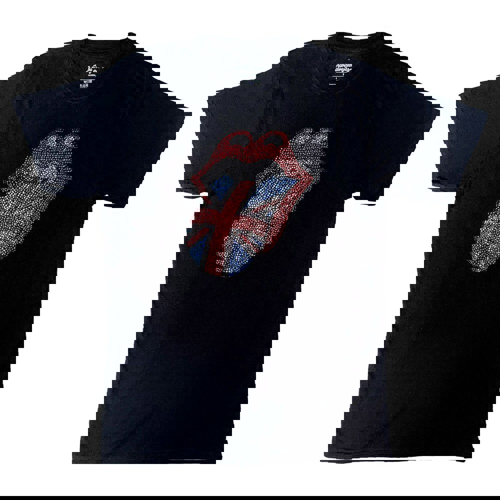 An official licensed The Rolling Stones Unisex T-Shirt featuring the 'Classic UK' design motif. This high quality T-Shirt is available in a black colourway. High quality soft-style cotton fashion tee with short sleeves, richly embellished with diamante/rhinestone crystals. High quality soft-style cotton fashion tees richly embellished with diamante/rhinestone crystals. Comes in a wide range of sizes from Small through XX-Large, subject to availability.