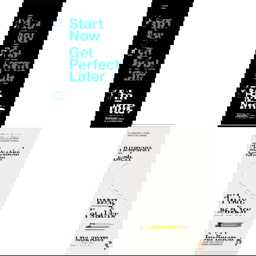 Thinking, Fast and Slow by Daniel Kahneman and Start Now. Get Perfect Later by Rob Moore are brought together in this two-book collection set, exploring how decisions are made and what can prevent action. Across both titles, the focus is on recognising unhelpful patterns of thought and developing approaches that support clearer choices and forward momentum.