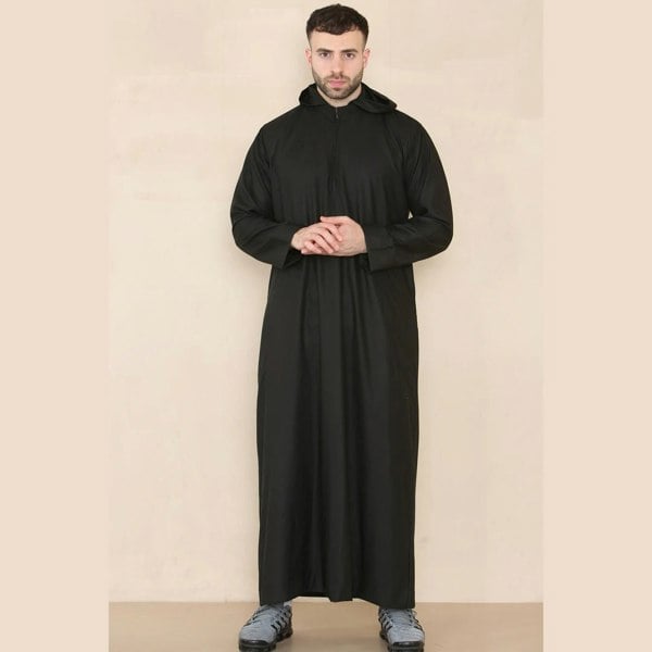 Thobez Men's Hooded Thobe Nehru Collar Islamic Clothing Muslim Kaftan Robe Saudi
