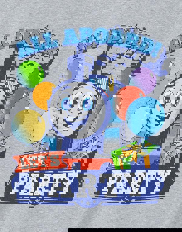 All aboard the party express! Step up your little conductor's celebration with our Thomas & Friends Boys Party T-Shirt - a grey short sleeve Tee with festive balloons and presents