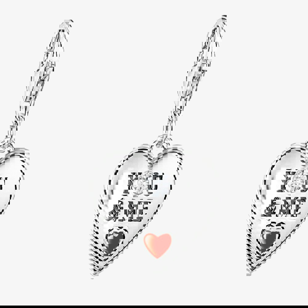 Charm YOU & ME with Red Enamel – This hand-finished charm, crafted from recycled 925 silver, features a radiant white cubic zirconia stone and vibrant red enamel. The sparkling zirconia forms the "O" in "YOU," adding brilliance, while the heart-shaped enamel shines with love. Engraved with "YOU & ME" and the infinity symbol, it symbolizes eternal connection and cherished memories. Complete with a lobster clasp, it’s perfect for bracelets or necklaces. A meaningful gift for yourself or someone special—express your love story through your charm collection.