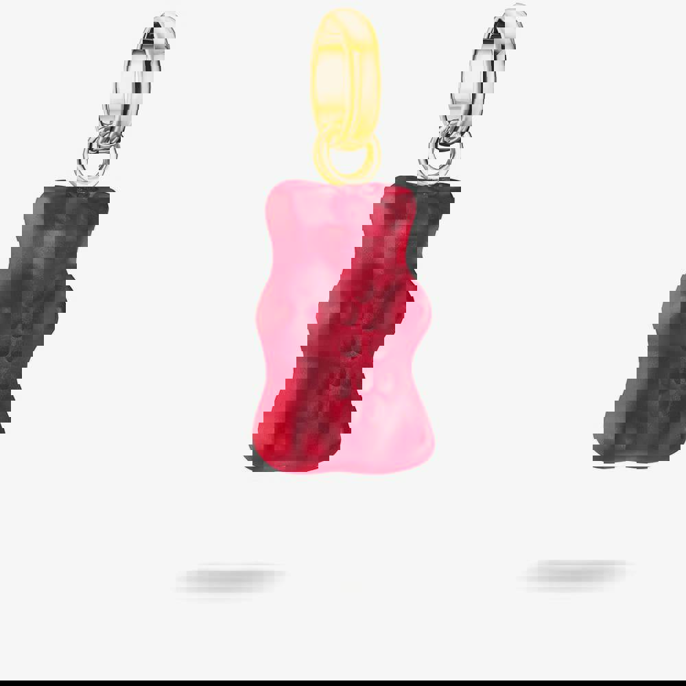 Add a playful yet elegant touch to your jewellery collection with this red Haribo gummy bear dangle charm. Crafted from 18ct gold-plated recycled 925 sterling silver, it features a vibrant red bear made from shatterproof crystal glass. This fun and eye-catching charm combines whimsy with sustainability, making it the perfect addition to your collection or a gift for a loved one.