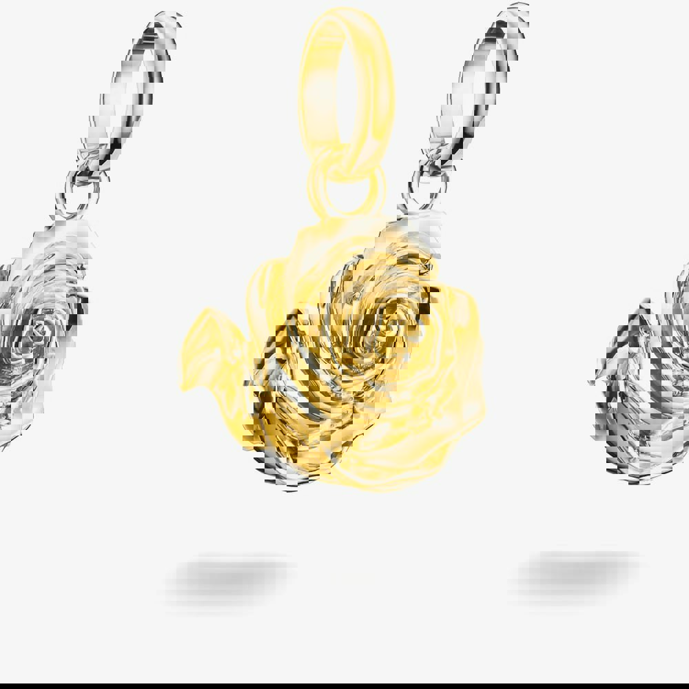 A graceful symbol of love and beauty, this rose dangle charm is finely crafted from 18ct gold-plated recycled 925 sterling silver. With its delicate detailing and warm golden finish, it brings a romantic, nature-inspired touch to your look. Perfect for commemorating a meaningful moment or simply adding timeless elegance to your jewellery collection.
