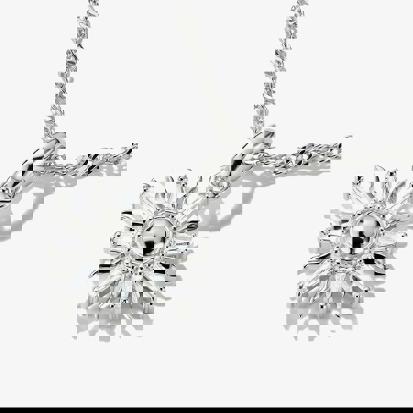 Radiating warmth and positivity, this sun dangle charm is a symbol of energy, vitality, and light. Beautifully accented with white cubic zirconia stones, it sparkles with every movement. Crafted from recycled 925 sterling silver, this charm brings a touch of brilliance and meaning to your look, perfect for those who carry sunshine wherever they go.