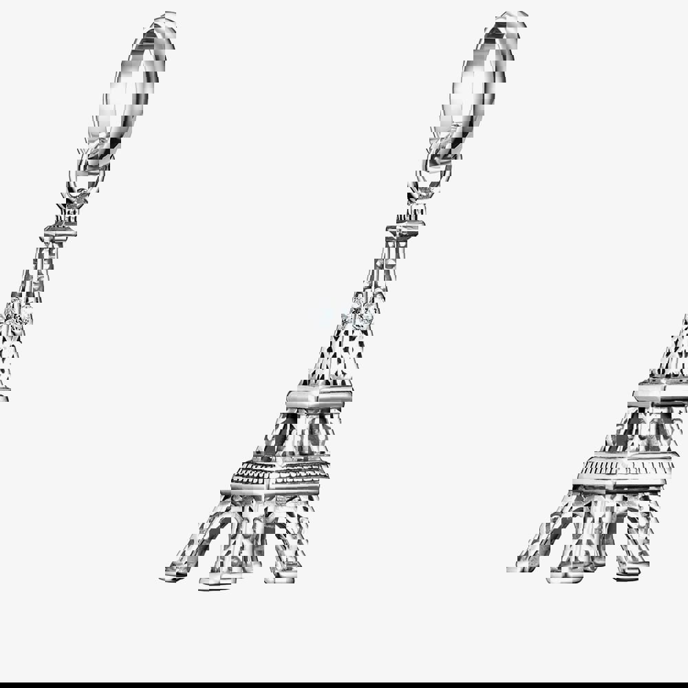 Capture the romance and elegance of Paris with this Eiffel Tower dangle charm. Crafted from recycled 925 sterling silver, it features a delicate design of the iconic tower, enhanced with a sparkling white cubic zirconia stone for added brilliance. A perfect piece to symbolise love, travel, or unforgettable memories, this charm adds a sophisticated and timeless touch to your Connect bracelet or necklace.