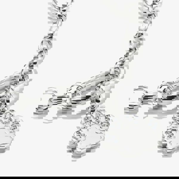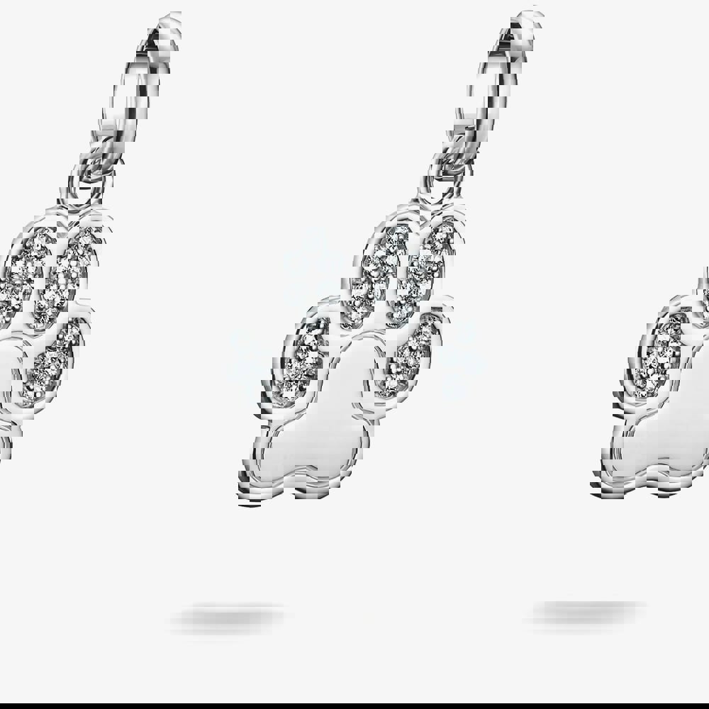 This paw print dangle charm is a heartfelt tribute to the love and loyalty of our furry companions. Adorned with white cubic zirconia stones, it adds a subtle sparkle while symbolising the bond between you and your pet. Crafted from recycled 925 sterling silver, this charm is a beautiful way to carry a piece of your pet’s spirit with you.