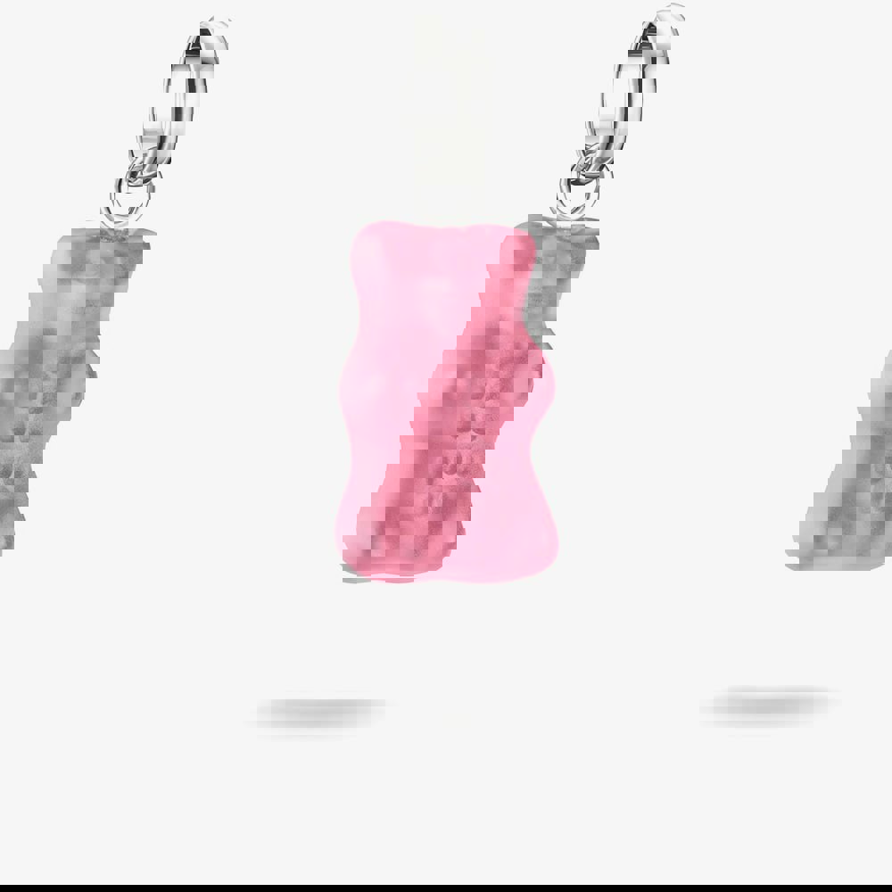 Bring a touch of fun and whimsy to your jewellery collection with this pink Haribo gummy bear dangle charm. Made from shatterproof crystal glass, the vibrant pink bear is set in recycled 925 sterling silver, combining playful design with sustainability. A delightful piece that adds a pop of colour and charm, perfect for expressing your unique personality or gifting a sweet treat to someone special.
