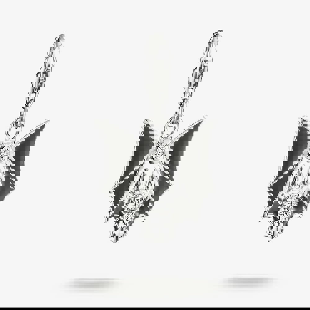 Crafted from recycled sterling silver, the Thomas Sabo True Romance Bat Charm features a blackened finish with black enamel detailing on the wings and a single white round cubic zirconia perched above the bat. Blending Victorian symbolism with modern elegance, it embodies the romantic Gothic spirit of the True Romance collection and is compatible with both Charm Club and Charm Club Connect.