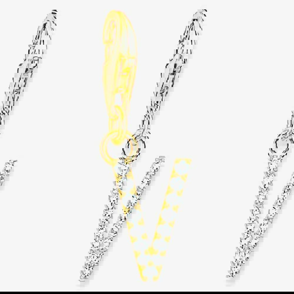 The THOMAS SABO Gold Plated Letter V Charmista dangle charm is made from sterling silver and set with white cubic zirconia.