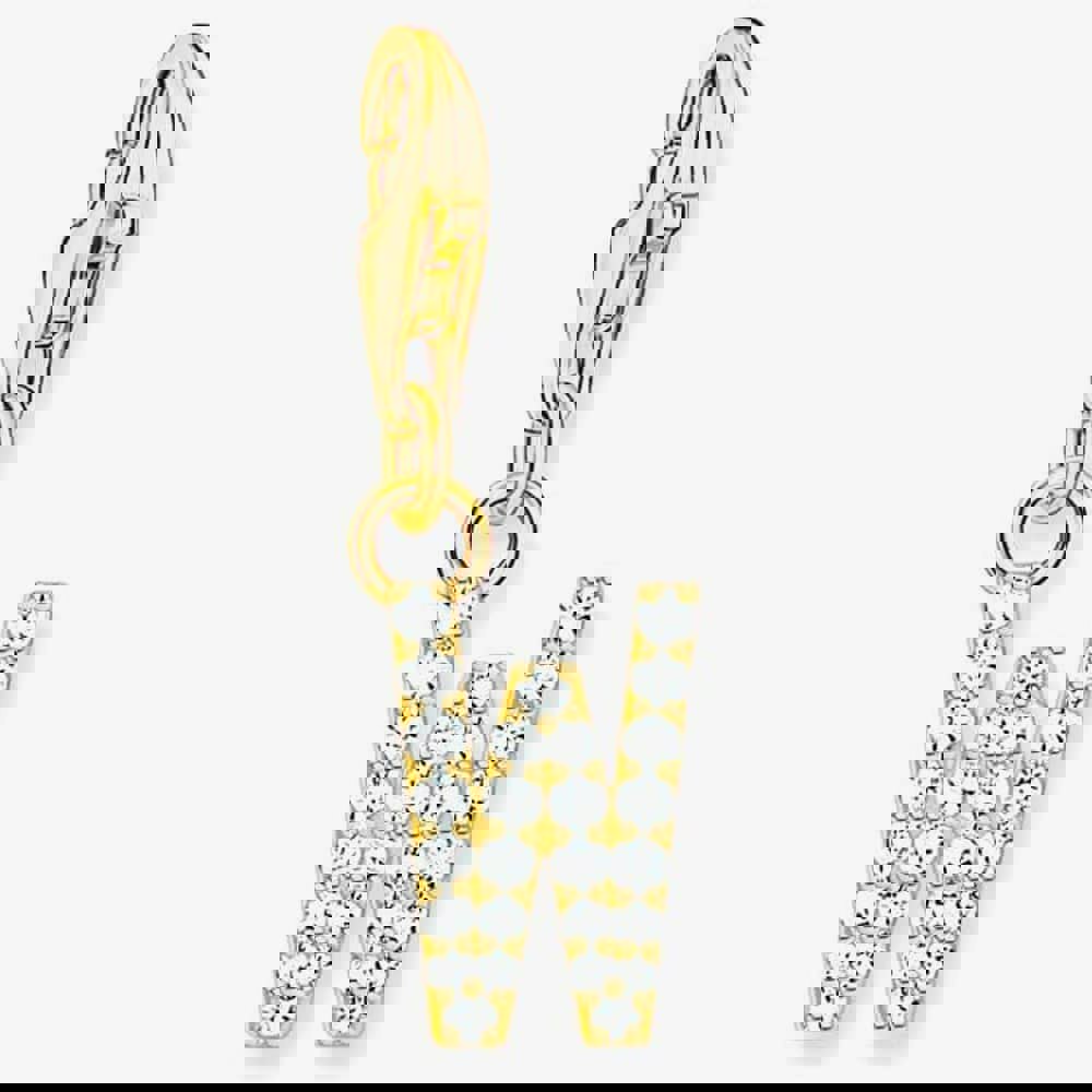 The THOMAS SABO Gold Plated Letter W Charmista dangle charm is made from sterling silver and set with white cubic zirconia.