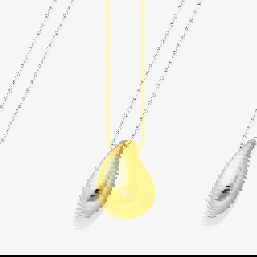 This refined necklace, featuring a drop pendant, is crafted from recycled silver with 18k gold plating, showcasing exceptional craftsmanship and sophistication. Inspired by nature, its design beautifully captures organic shapes with timeless and graceful silhouettes. Indulge in this modern necklace and pendant that embody subtle luxury. The open-back design with cut-out details and the TS logo ensures all-day comfort, while the adjustable length between 45 and 50 cm offers versatility in wear.