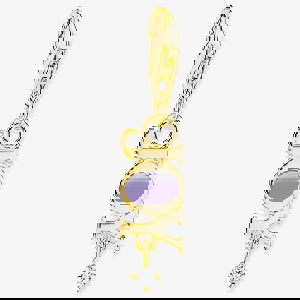 The THOMAS SABO Charmista JOY charm has been delicately created in 18ct yellow gold-plated sterling silver. The letter O has been hand-painted with violet cold enamel with a sparkling white cubic zirconia drop to add a little touch of sparkle. This charm is completed with a lobster clasp fastening so can be attached to Charm Club Charmista bracelets or necklaces to suit your mood and style.