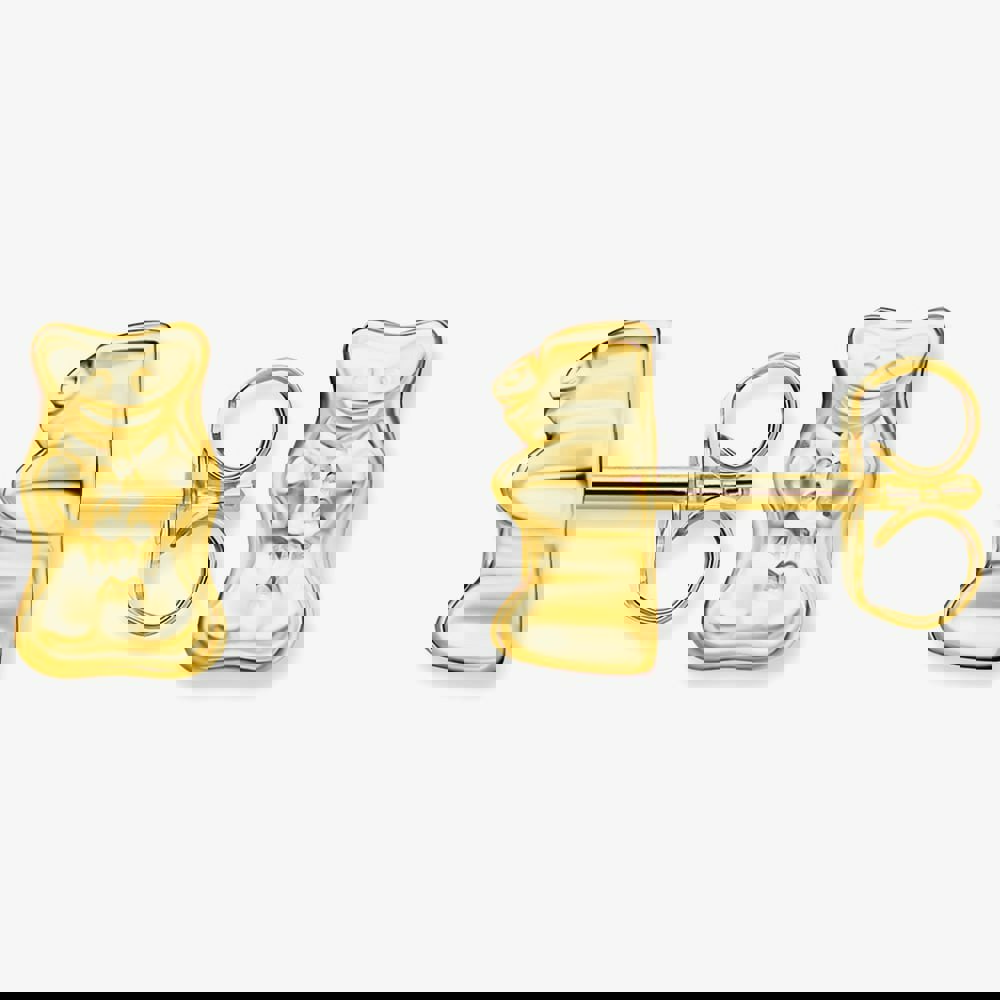 Dive into the joyful world of the THOMAS SABO x HARIBO collection and wear lifelike Goldbears. These Goldbears-shaped ear studs reinterpret the iconic fruit gummies in a gold-toned design, evoking nostalgic memories with a playful twist or completing your Y2K-inspired look. Crafted from recycled 925 silver and plated with high-quality 18k gold, they feature a THOMAS SABO x HARIBO engraving on the back.