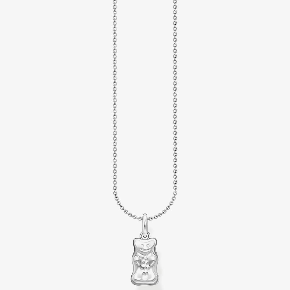 Dive into the playful world of the THOMAS SABO x HARIBO collection and treat yourself to a pendant that mimics the iconic Goldbears. The necklace with its gummy bear pendant reimagines the beloved candy in a sleek silver design made from recycled 925 silver, evoking nostalgic childhood memories with a cheeky twist, or completing your Y2K-inspired look. Necklace has an adjustable length from 45 to 50cm.