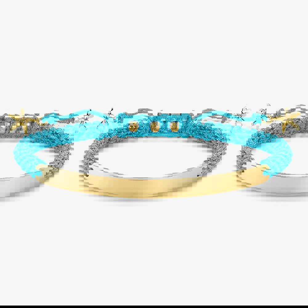 Give your festival attire a vibrant edge with this stunning bracelet from the THOMAS SABO Love Bridge range. Featuring a gorgeous gold plated silver bridge and eye catching bright blue macrame style bracelet, complete with gold plated starfish tassels for a stylish finish. Buy with confidence