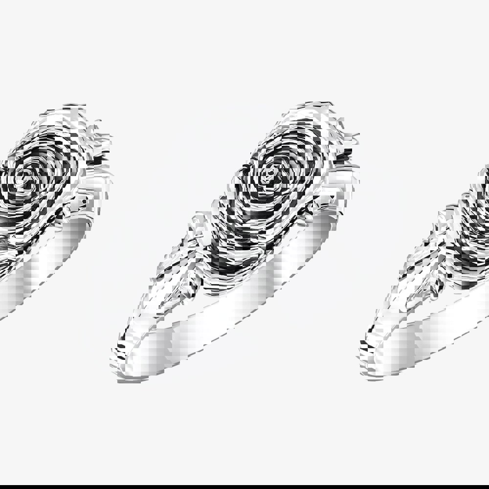 Midnight Rose Ring in Blackened Silver – Crafted from recycled silver, this ring features a three-dimensional rose design with intricate details and delicate leaves along the band. Symbolizing love and meaning, it’s available in various sizes and makes a striking statement piece or a thoughtful gift for someone special.