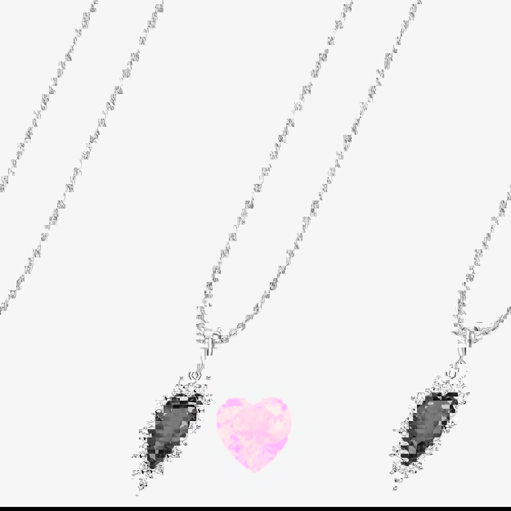 Crafted from recycled silver, this necklace features a heart-cut lab-grown red ruby surrounded by sparkling white zirconia stones. The elegant Singapore chain, adjustable between 40, 42. 5, and 45 cm, complements the vibrant pendant. A timeless symbol of love, it’s a perfect gift on its own or paired with matching jewellery.