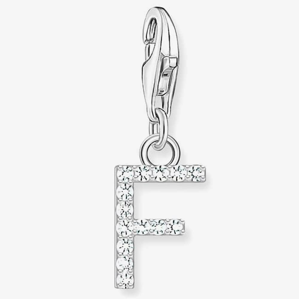 Bring a personal touch to your jewellery collection with the THOMAS SABO Letter F Charmista dangle charm. Crafted in sterling silver, it is set with white cubic zirconia for a crisp, light-catching finish that stands out on a charm carrier or bracelet. The letter silhouette keeps the look clean and graphic, making it an easy choice for everyday styling or a thoughtful initial-inspired gift.