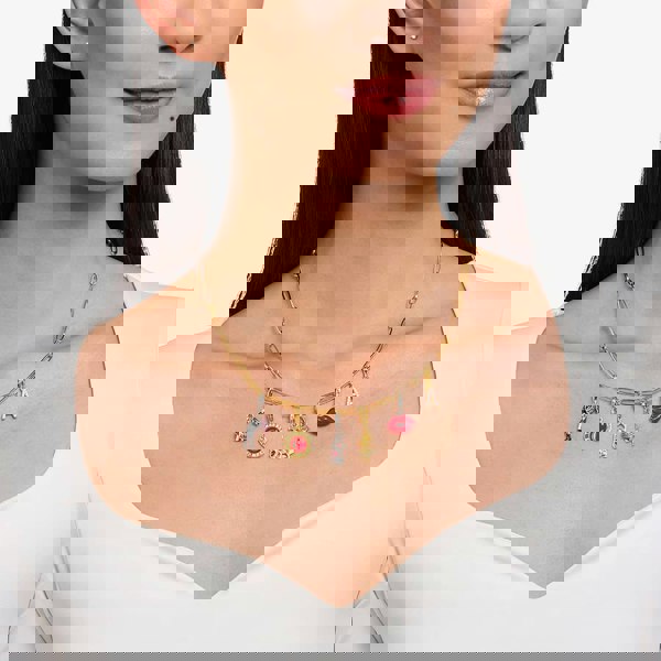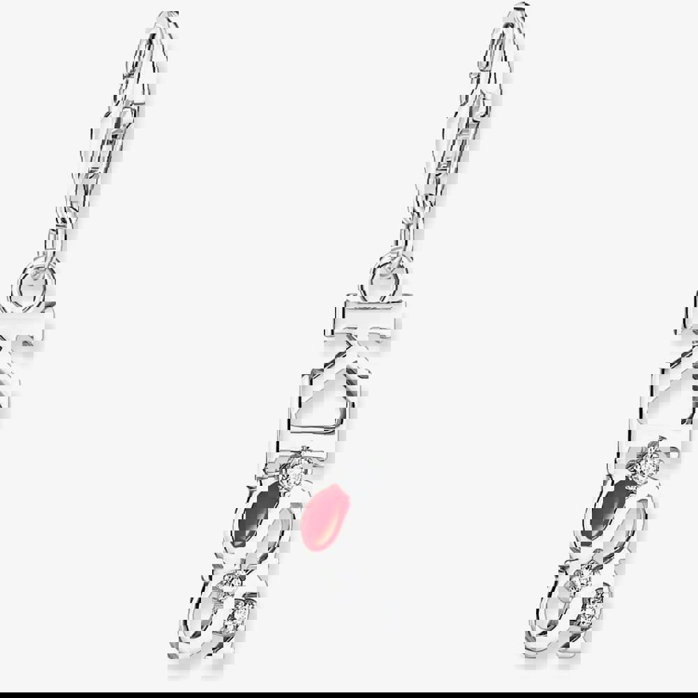 Crafted from recycled silver, this pendant charm is enhanced with hand-painted red cold enamel, it exudes a romantic aesthetic, embellishing the hallmark of one of the two 'S' letters. Both 'S's in the word 'KISS' are adorned with white zirconia stones, adding a touch of elegance.