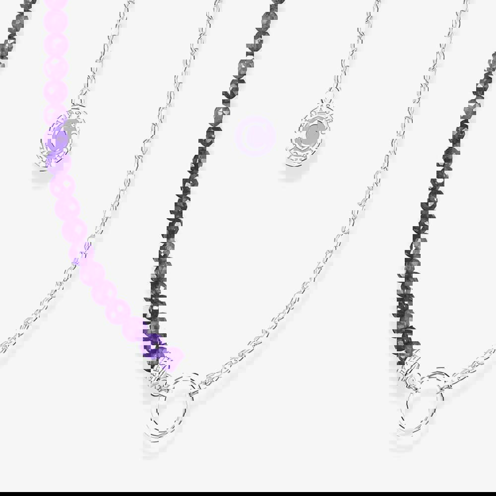 A delightful combination of a high-quality 925 Sterling silver link necklace and a beads necklace with violet imitation amethyst beads. The link chain is adorned with a round THOMAS SABO Charm Club Charmista Coin, hand-painted with sparkling purple cold enamel. The beads necklace features intricately designed end caps with engraved lines.