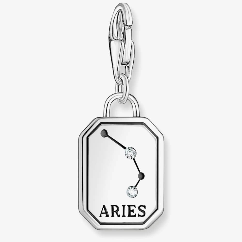 This octagonal-shaped charm is crafted from recycled silver with a slightly blackened finish, this exquisite charm features the iconic Aries zodiac sign adorned with small, sparkling white zirconia stones. Perfect for adding a touch of celestial elegance to your charm bracelet or necklace.