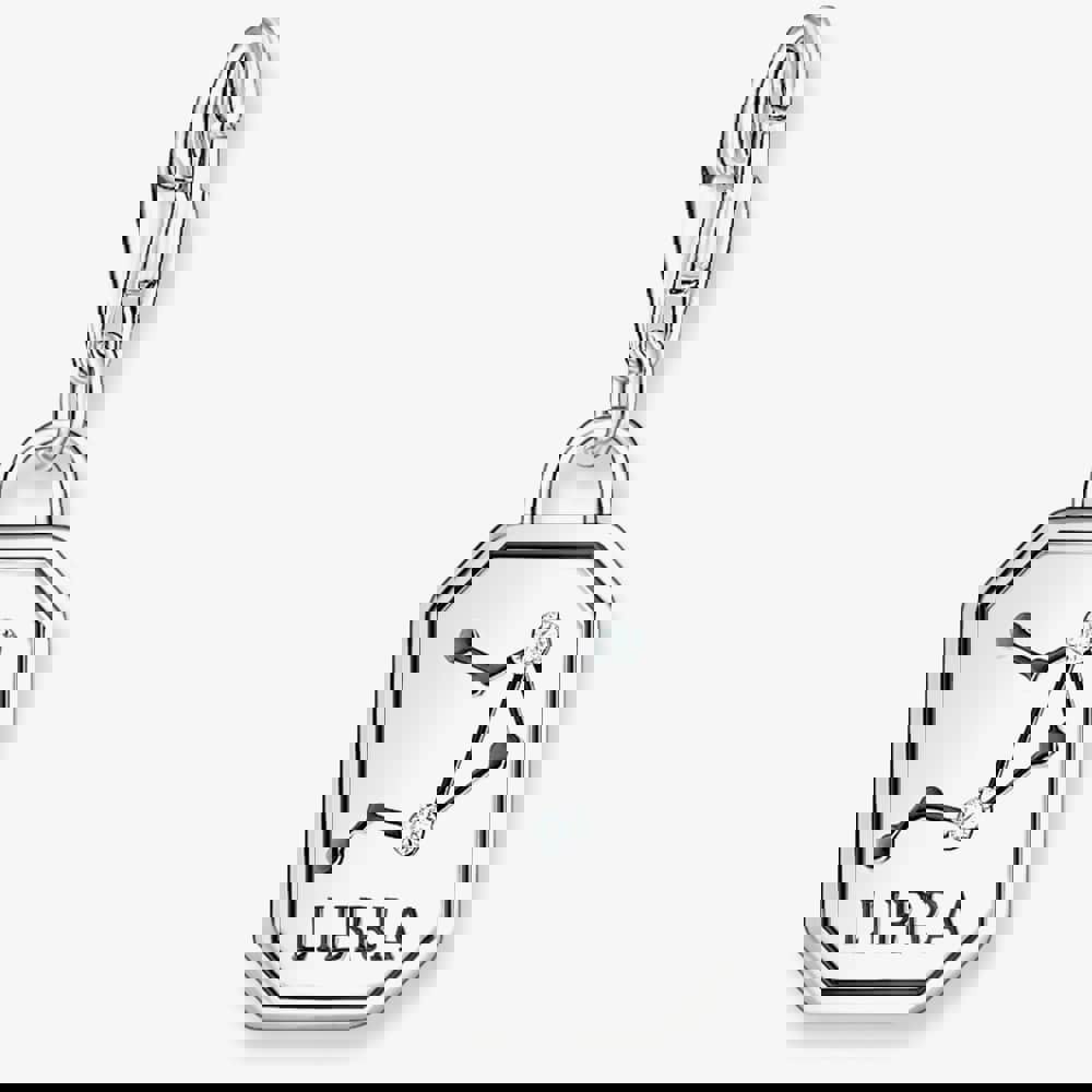 This octagonal-shaped charm is crafted from recycled silver with a slightly blackened finish, this exquisite charm features the iconic Libra zodiac sign adorned with small, sparkling white zirconia stones. Perfect for adding a touch of celestial elegance to your charm bracelet or necklace.