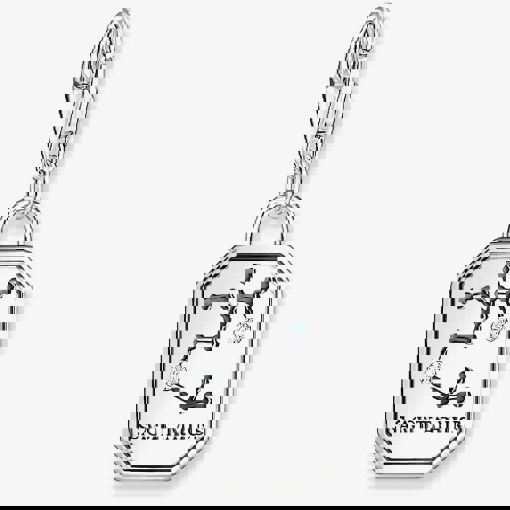 This octagonal-shaped charm is crafted from recycled silver with a slightly blackened finish, this exquisite charm features the iconic Sagittarius zodiac sign adorned with small, sparkling white zirconia stones. Perfect for adding a touch of celestial elegance to your charm bracelet or necklace.
