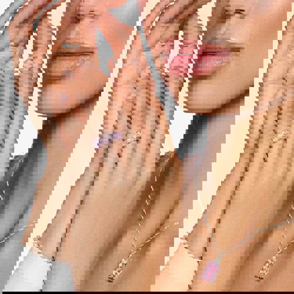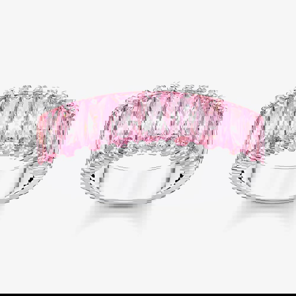 This timeless cocktail ring has been created in sterling silver & features sparkling baguette-cut pink cubic zirconia stones which are secured by four claws set in a half eternity style ring. Ideal for combining with other THOMAS SABO rings to create your own unique look.