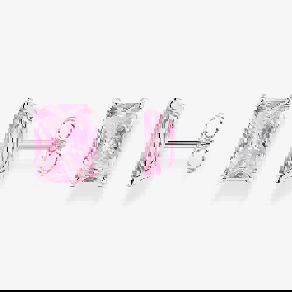 These timeless stud earrings are created in sterling silver & feature a sparkling octagon-cut pink cubic zirconia stone which are secured with four claws. These earrings are completed with a post & butterfly back fastening.