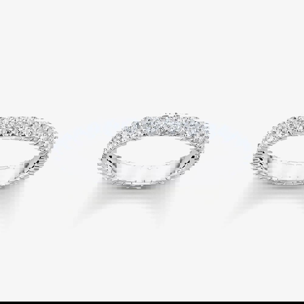 This delicate ring, with its timeless and classic design, embodies enduring beauty. Crafted from recycled silver, it is adorned with small white zirconia stones that encircle the band. Wear it alone or stack it with other rings to make it your go-to piece of jewellery.