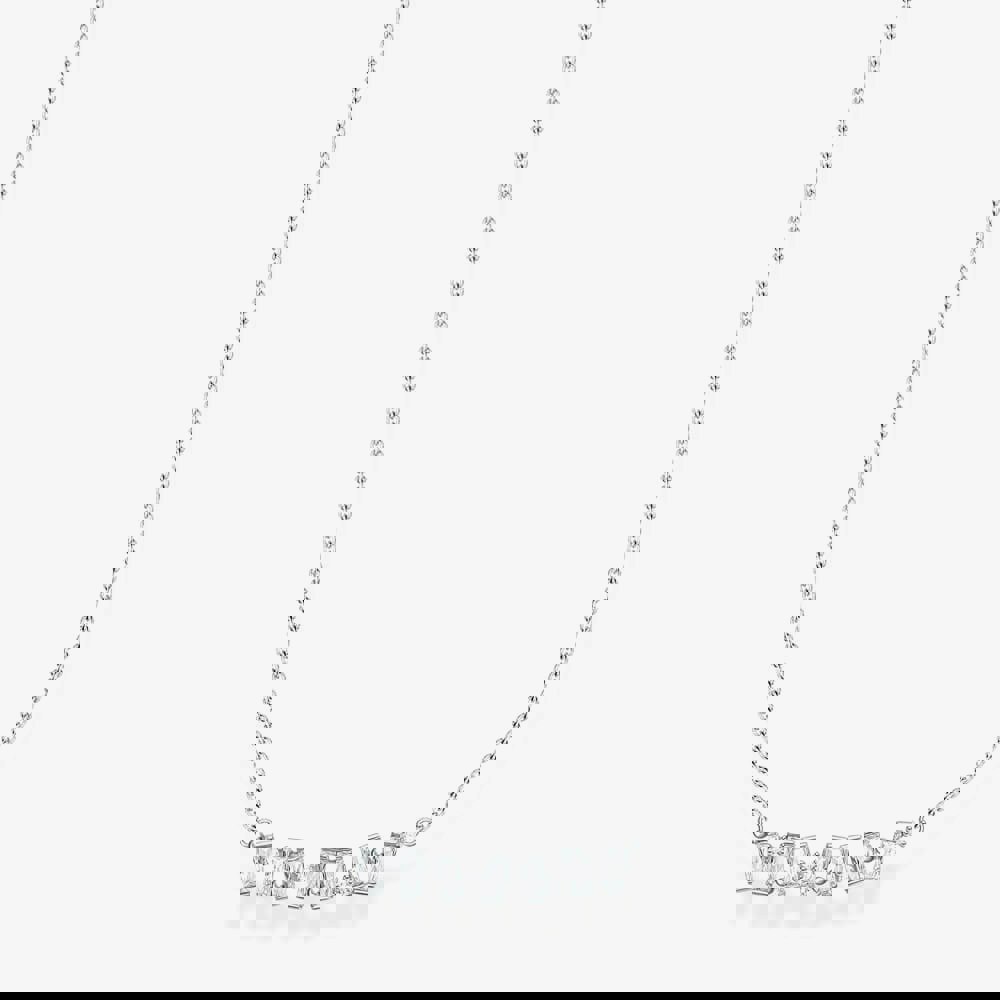 This Sterling Silver necklace is bought to us by THOMAS SABO. Featuring seven sparkling white baguette cubic zirconia stones. The length is adjustable from 38 cm to 42 cm.